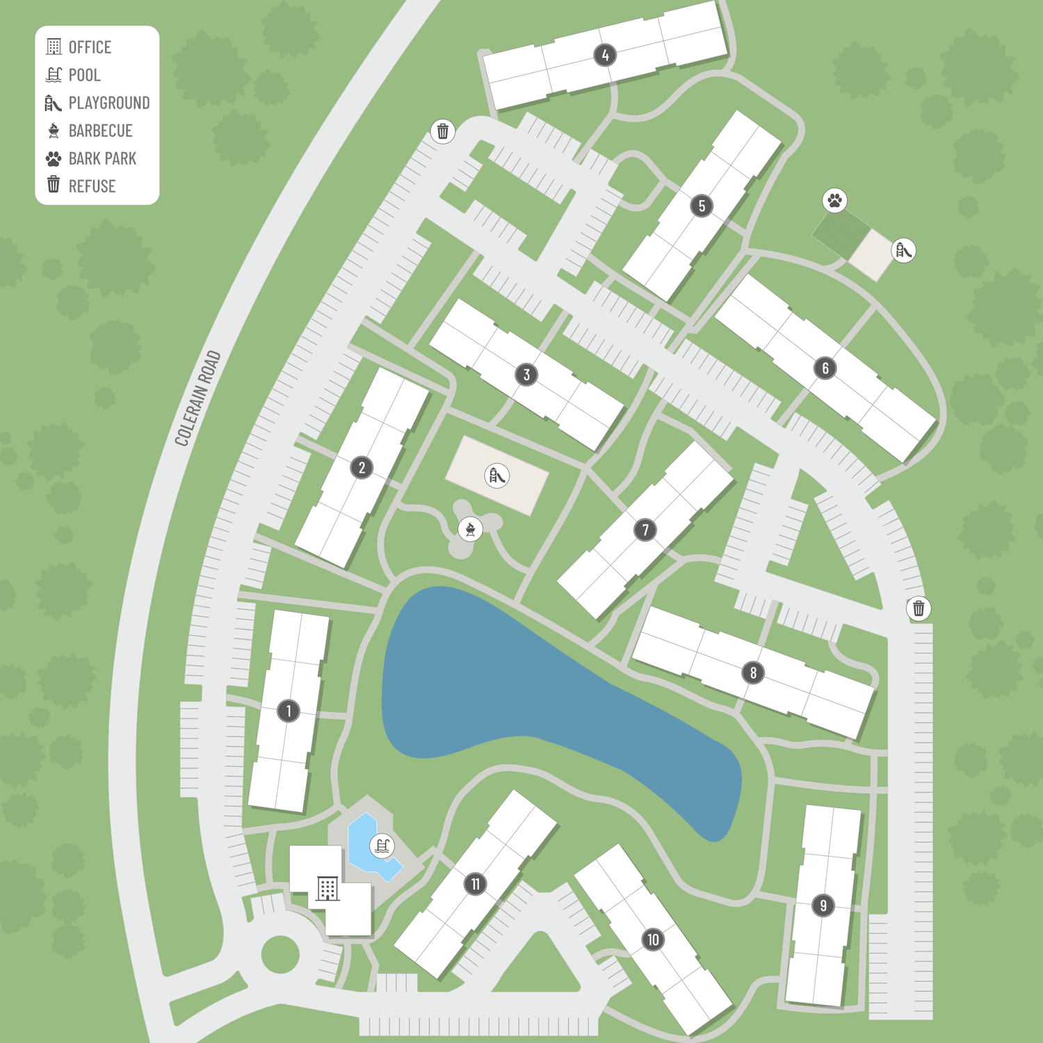 Select a floor plan or bedroom count to view those units on the overhead view on the site map. If you need assistance finding a unit in a specific location please call us at 833-415-1168 TTY: 711.